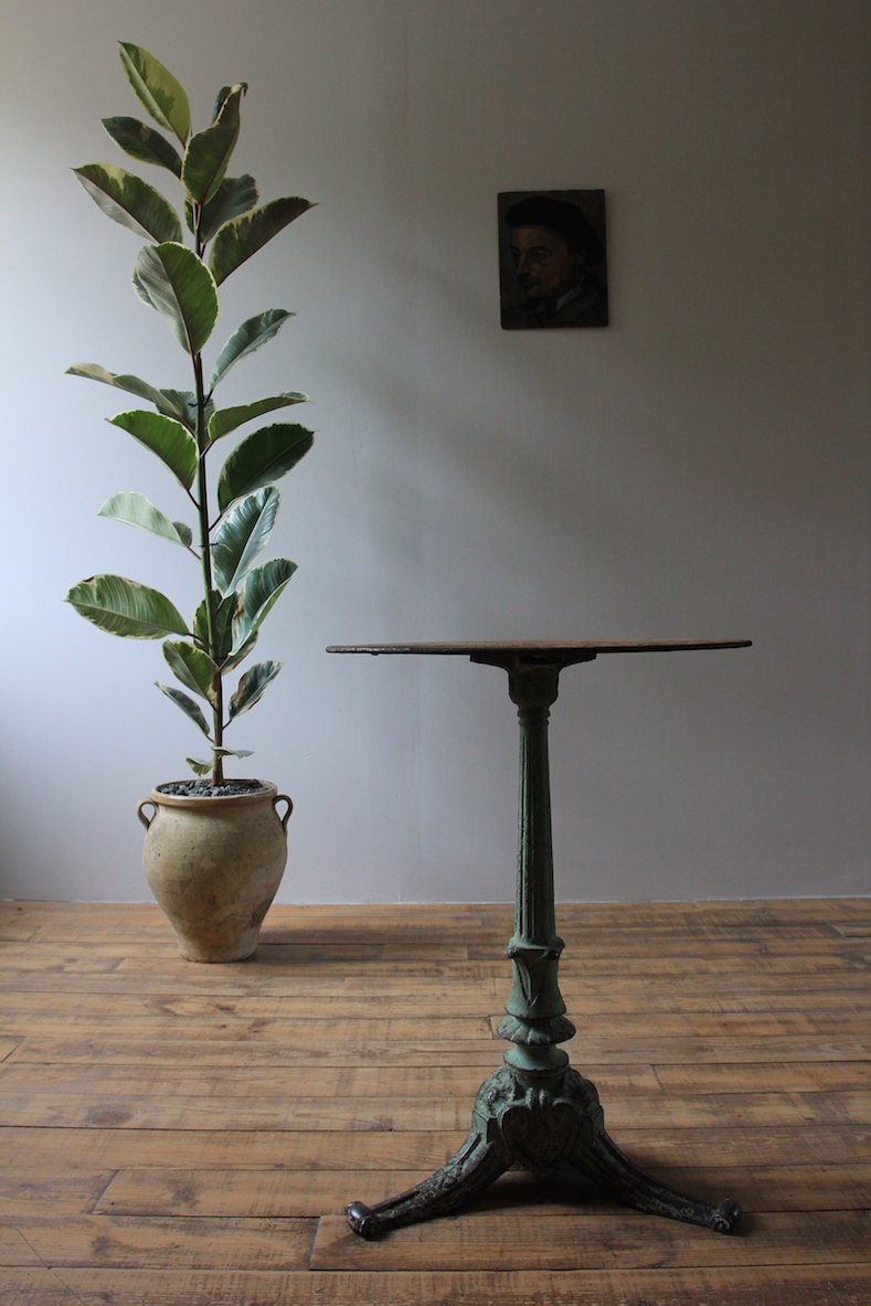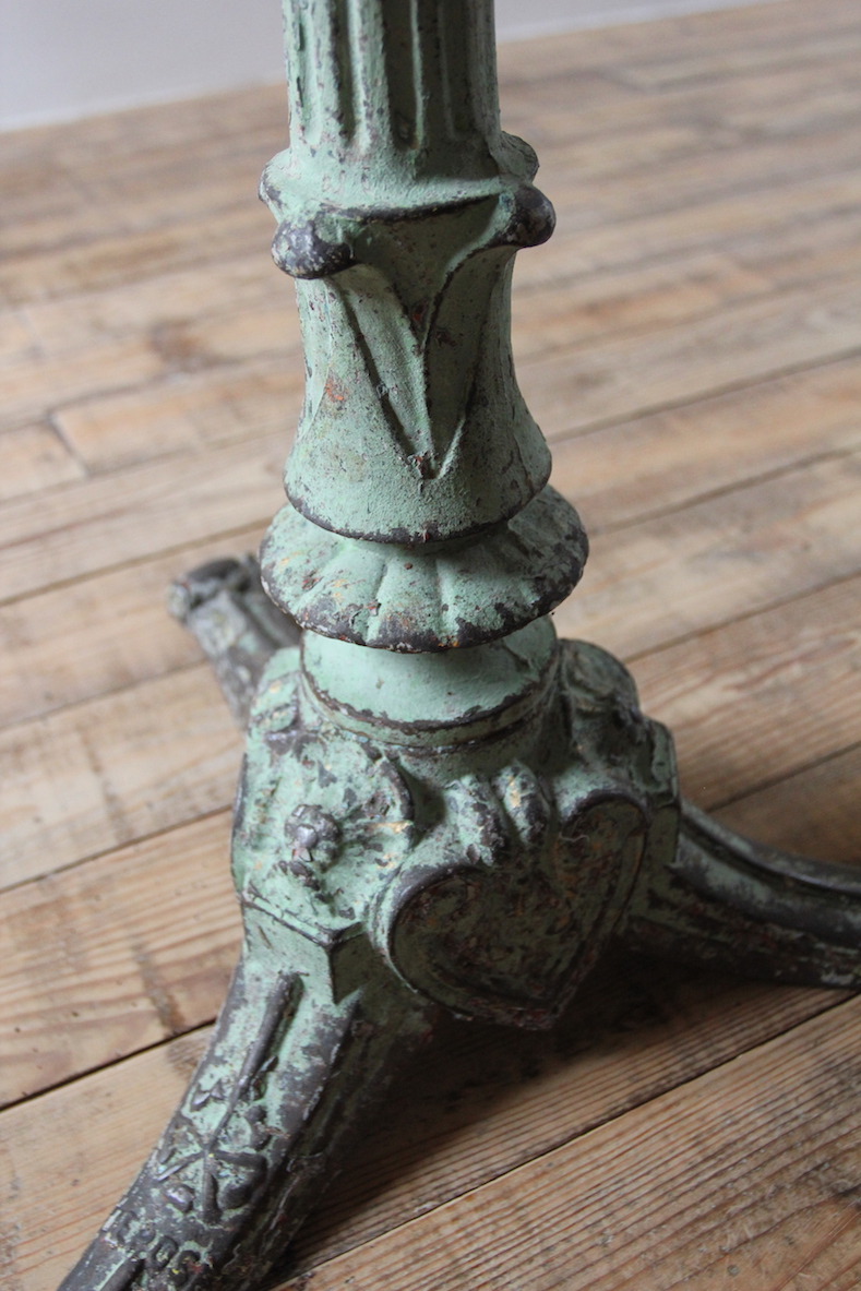 19th Century French bistro table, cast iron with original paint, fantastic patination.